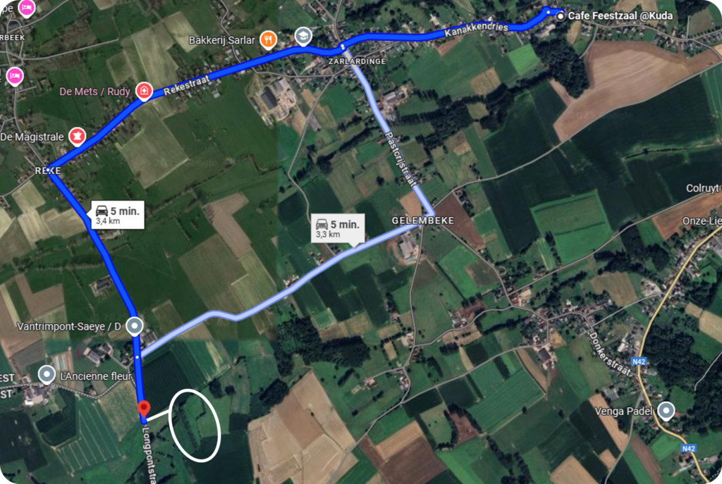 Parkeren op openbare weg en te voet door de losweg tot de demolocatie wandelen.